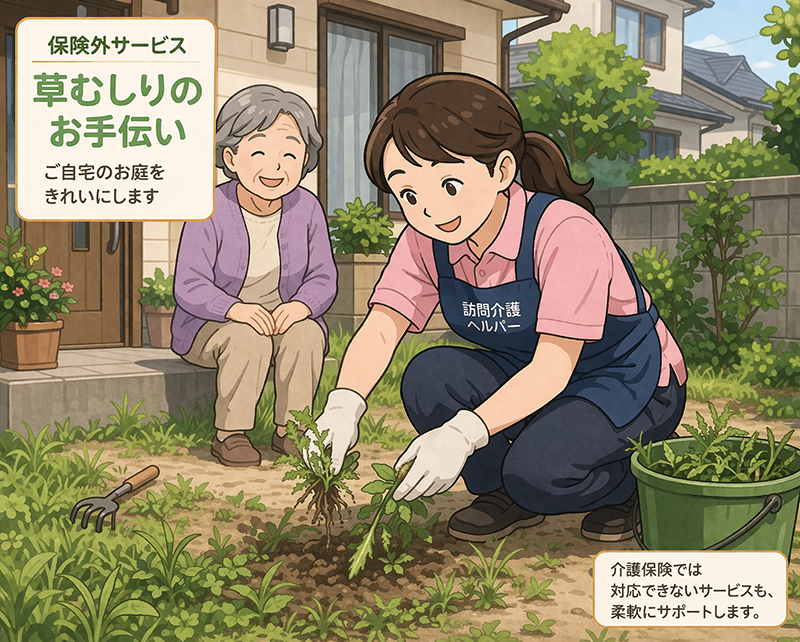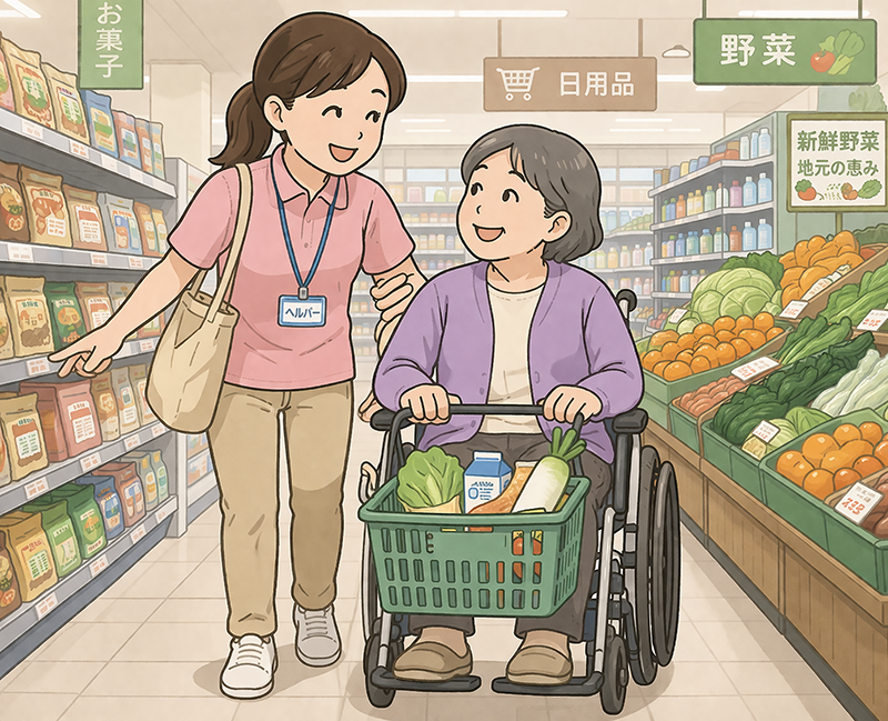 食事や草むしりなどの日常生活の支援から、お買い物やスポーツ観戦などの娯楽まで、幅広い支援を行っております。